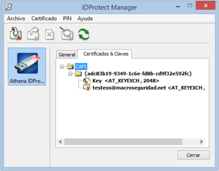 Usted debe tener instalado el driver previamente, si no lo tiene instaldo siga los pasos de la pregunta “¿Cómo instalar el driver de Athena MS-IDProtect?” para realizar la instalación.
